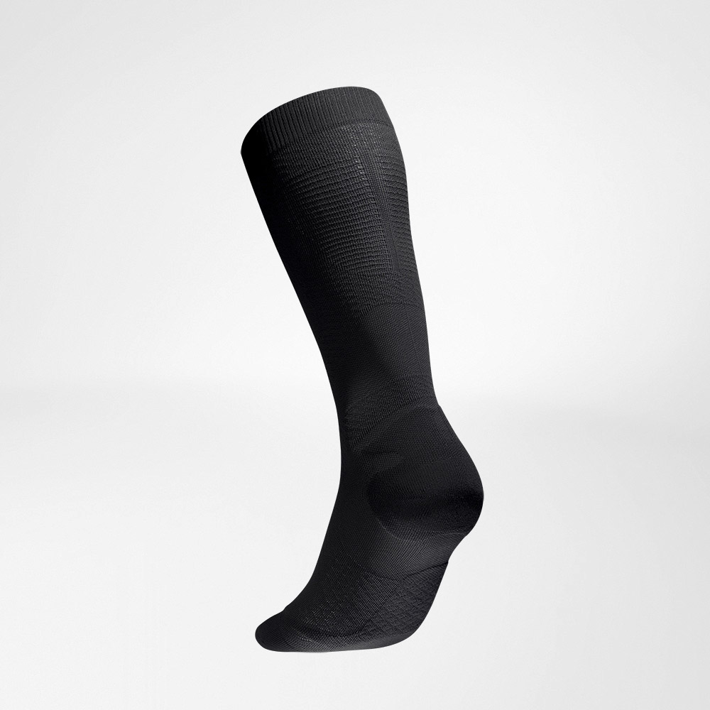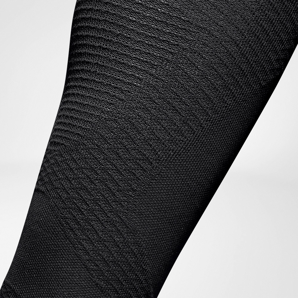 De Run Ultralight Compression Socks combineren de beste eigenschappen van lichte sportcompressiekousen: het ultradunne breiwerk is bijzonder ademend en zorgt zo voor een aangenaam loopgevoel, ook op warme dagen. Geïntegreerde compressiezones ondersteunen de kuitspieren en stabiliseren het spronggewricht en de voet. Unieke compressiezones aan de kuit verminderen spiertrillingen en bevorderen de bloedcirculatie. Daardoor worden de spieren tijdens het hardlopen minder snel moe en blijven er meer vrije energiereserves over. De "Infinity Zone" voorkomt overbelasting: ze tilt de voetholte lichtjes op en ondersteunt het spronggewricht met lichte druk. De comfortzones "Relief Sole" en "Heel Protection" beschermen de voetzool en verminderen de drukbelasting op de hiel wanneer de voet in de loopschoen neerkomt. De uitsparing "Achilles Comfort" ontlast de achillespees en voorkomt overprikkeling in dit gevoelige gebied.